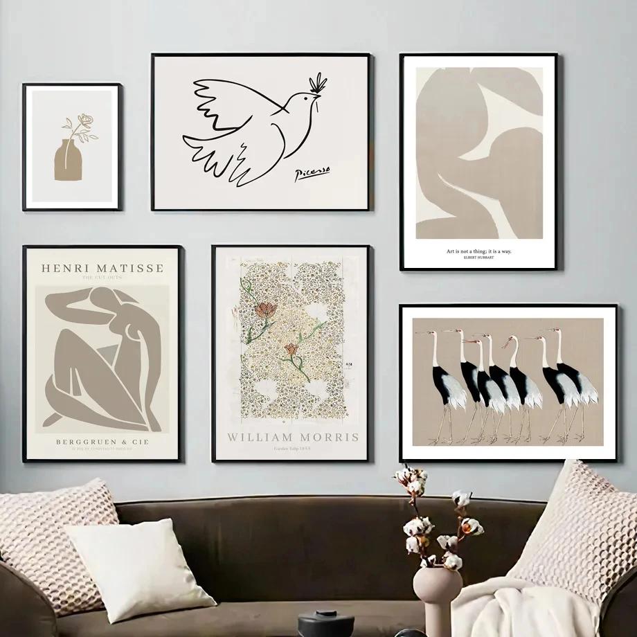 Абстрактные бежевые минималистичные линии вазы в стиле бохо Пикассо постеры настенное искусство холст картины и принты настенные картины для декора гостиной