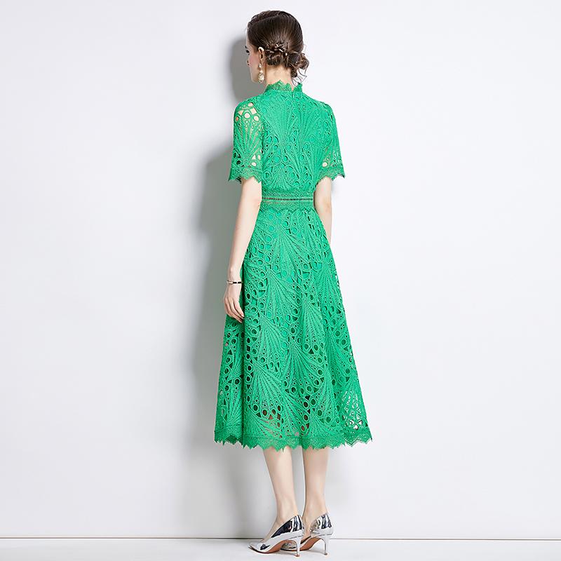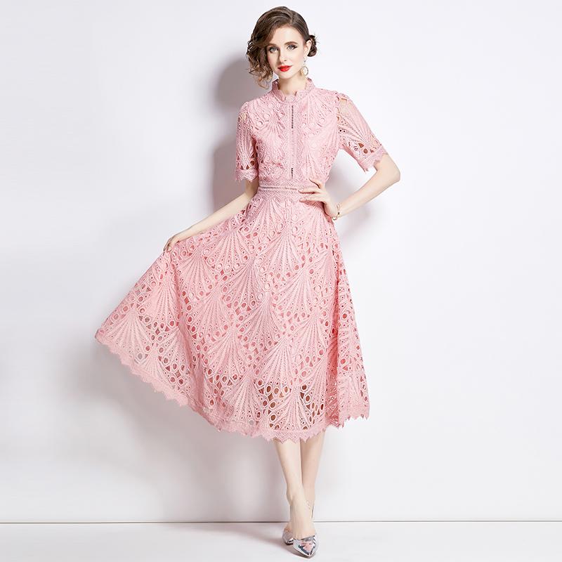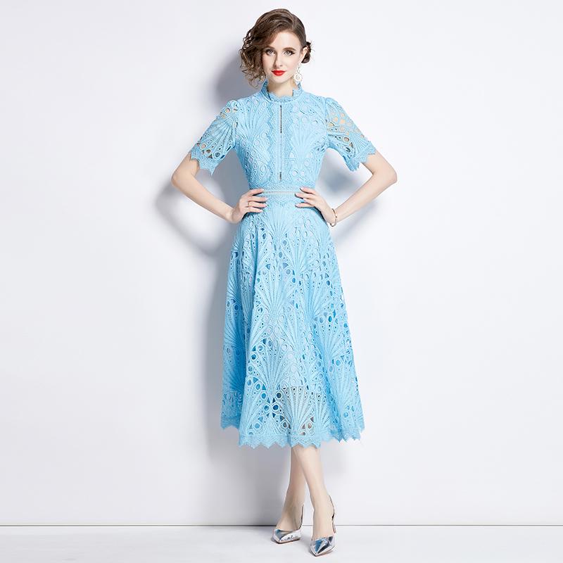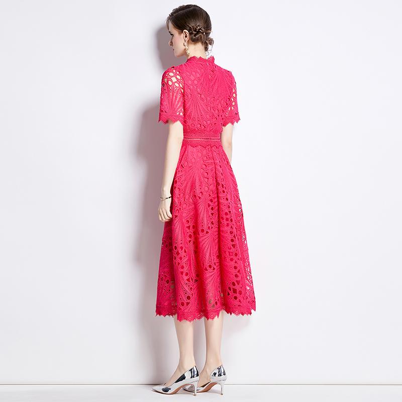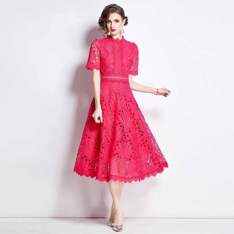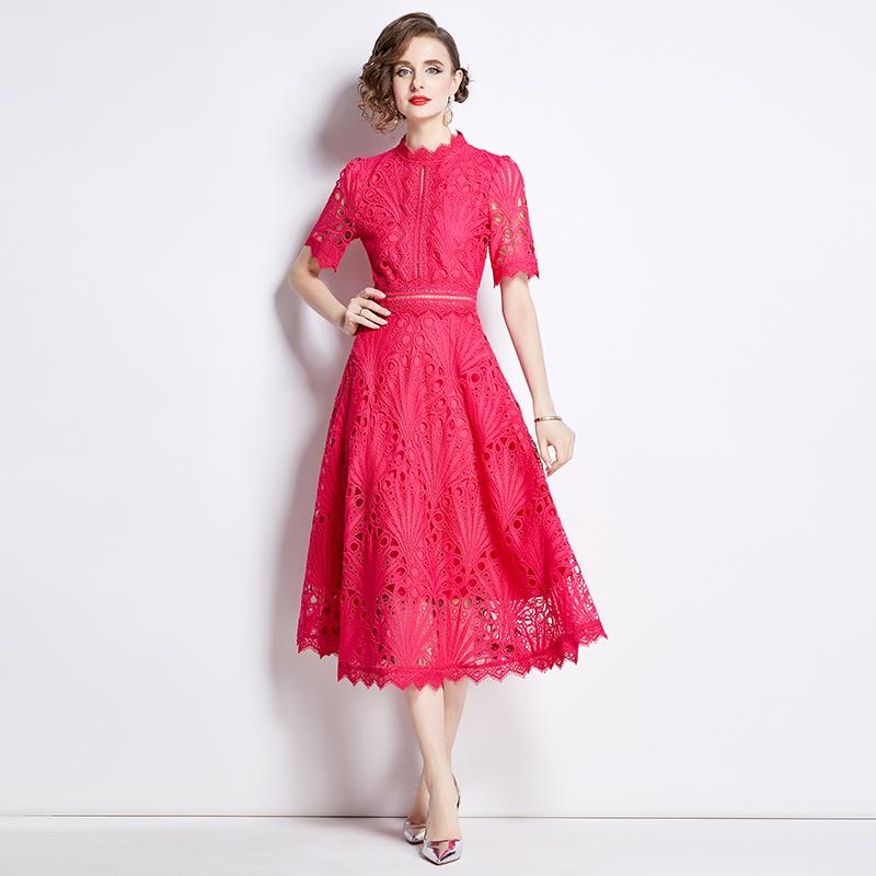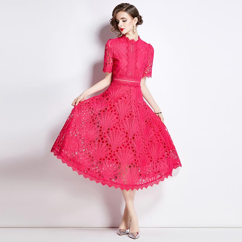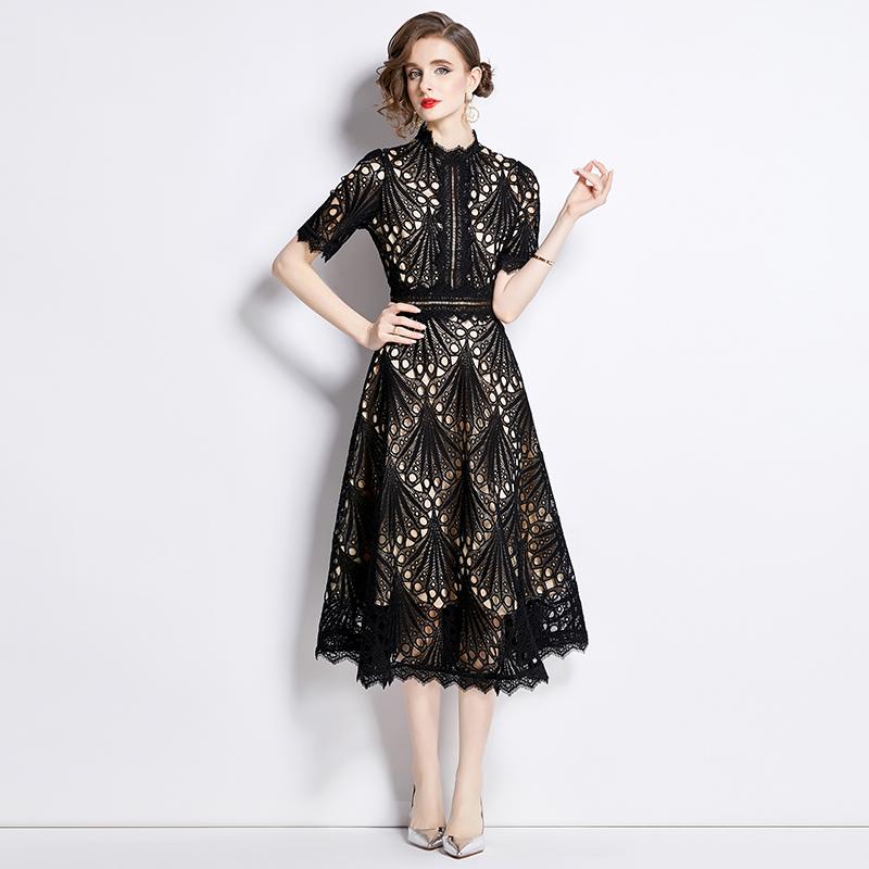S-4XL повседневное однотонное кружевное летнее платье с короткими рукавами 2024 Высокое качество крючком с цветочным принтом тонкие женские платья миди