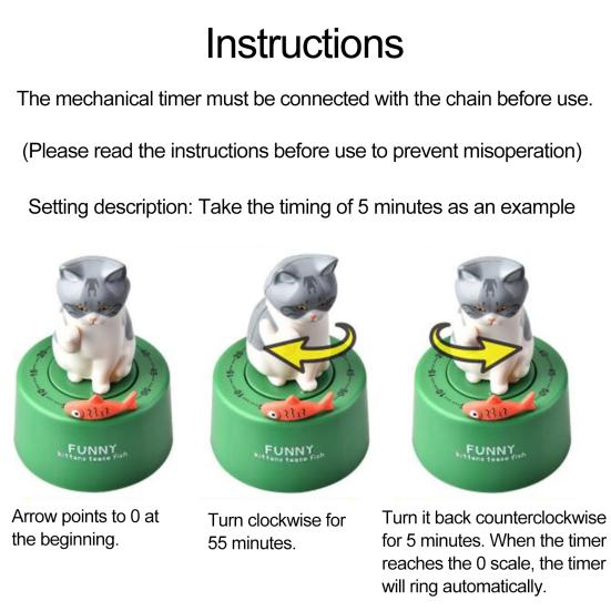 Этот таймер может работать и звонить без батареи из-за его механической конструкции. Таймер, который имеет магнитную конструкцию, может быть прочно прикреплен к металлической поверхности, чтобы принести вам удобство.