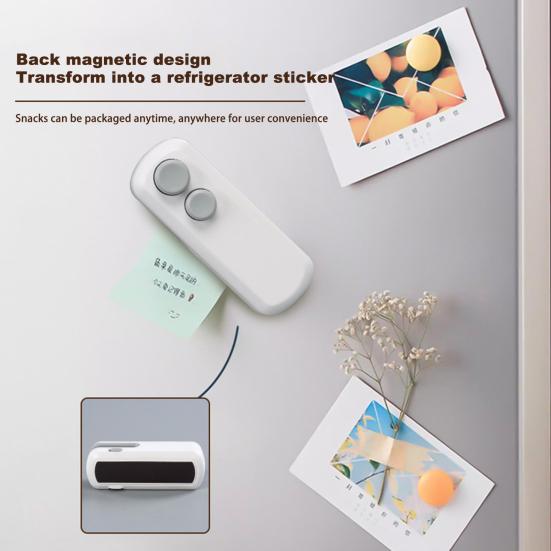 Представляем запечатщик пакетов, универсальное портативное устройство 2-в-1, сочетающее в себе функции запечатывания и резки для максимального удобства в пути.. Этот компактный инструмент идеально подходит для путешествий, кемпинга или походов. Этот компактный инструмент станет вашим идеальным помощником, позволяющим за считанные секунды легко запечатывать и разрезать различные типы пакетов, таких как пакеты для хранения продуктов, картофельные чипсы, фрукты и конфеты, гарантируя, что ваши закуски останутся чистыми.