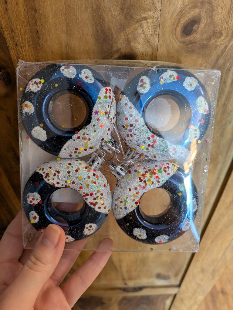 Набор подвесок в виде пончиков: 4 очаровательных подвески-пончика, которые креативно украсят вашу елку. Эти практичные и визуально привлекательные украшения идеально подходят для домашнего декора и усиливают атмосферу праздника своим восхитительным дизайном.