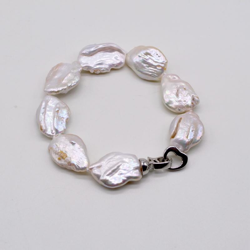 Браслет «Любовь» Браслет из натурального пресноводного жемчуга Серебряная монета в форме жемчуга в стиле барокко Дизайн браслета Женский браслет Бесплатная доставка