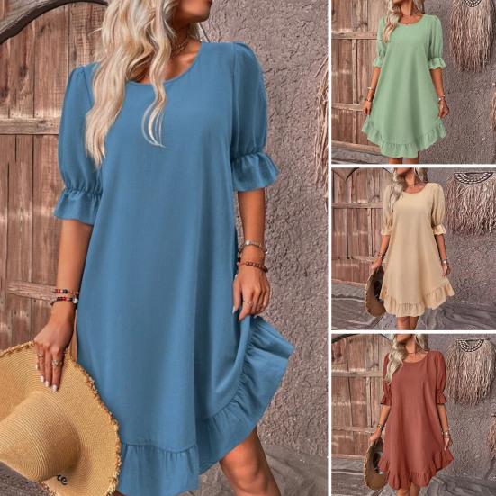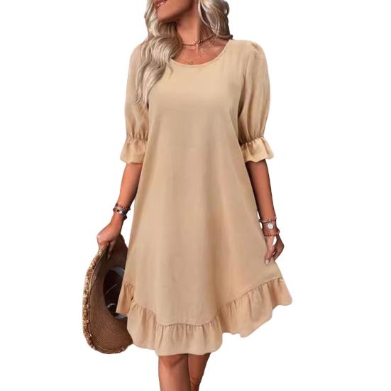 Улучшите свой повседневный гардероб с помощью этого женского свободного платья с широким подолом. Это платье, изготовленное из смеси хлопка и льна, обеспечивает комфорт и воздухопроницаемость и идеально подходит для летнего сезона.. Однотонный дизайн подчеркивает простоту, а круглый вырез и средние рукава добавляют элегантности..