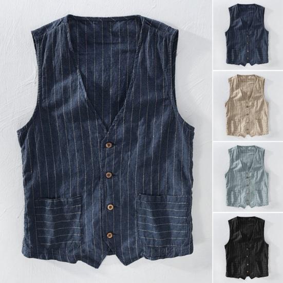 Поднимите свой стиль с помощью этого жилета британской модной рабочей одежды, универсального дополнения к гардеробу любого мужчины.. Этот жилет без рукавов, изготовленный из мягкого и дышащего хлопка и льна, излучает очарование ретро благодаря цветовому дизайну и однобортному V-образному вырезу.