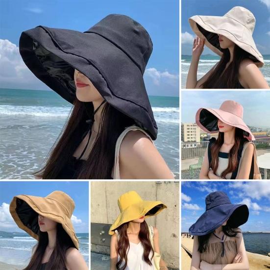 Женская рыбацкая шляпа с большими полями, защита от солнца, анти-УФ-складная, однотонная, ветрозащитная, с ремешком, термостойкая виниловая кепка для путешествий, пляжа, улицы — купить товар онлайн с бесплатной доставкой до всему миру!