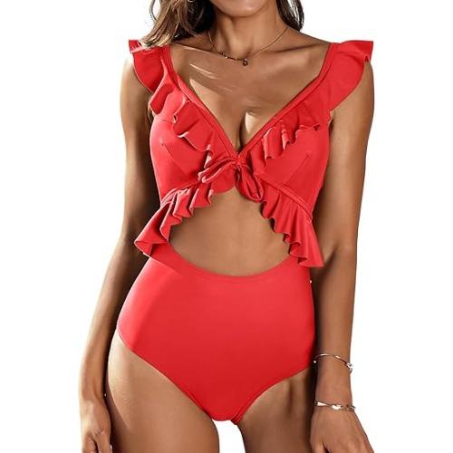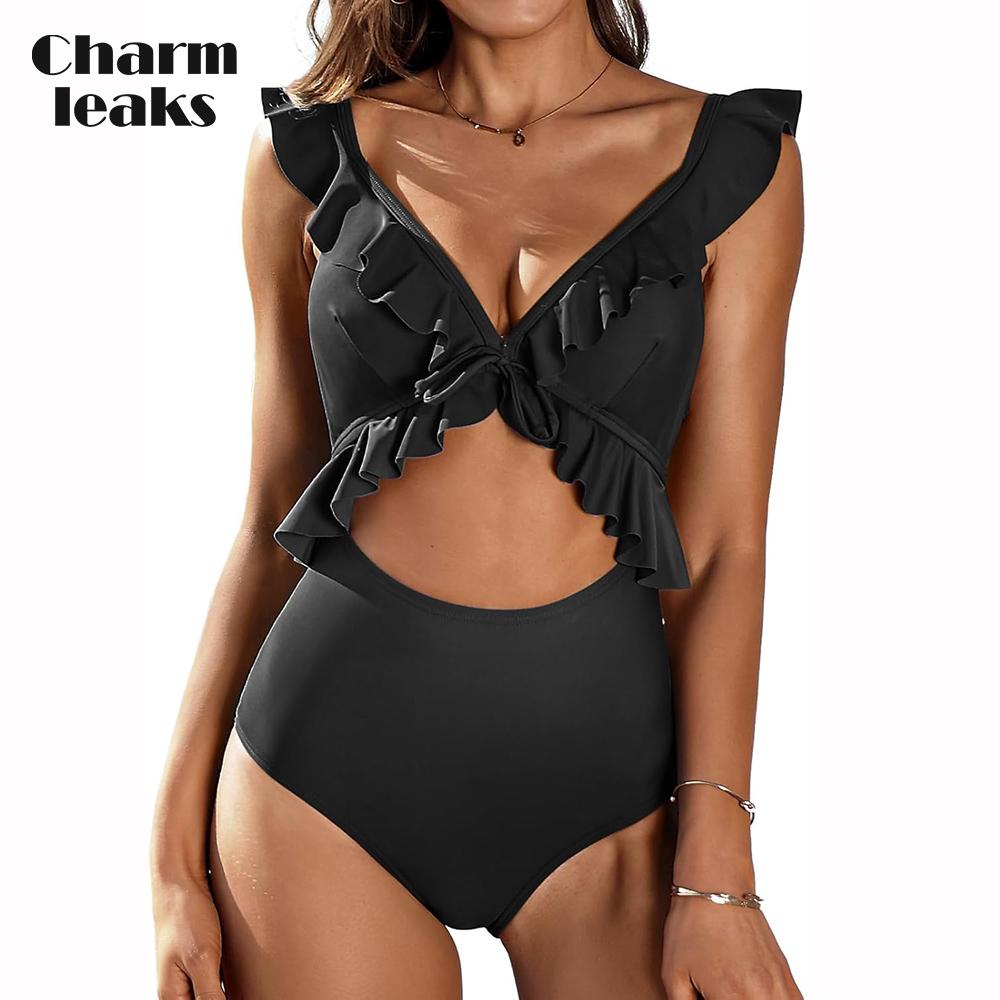 【Особенности и дизайн】 Женские цельные купальники с глубоким V-образным вырезом и воланами Falbala с вырезами и мягкой завязкой спереди; Регулируемые бретели сзади, с открытой спиной, на шнуровке сзади, цельные монокини, купальные костюмы