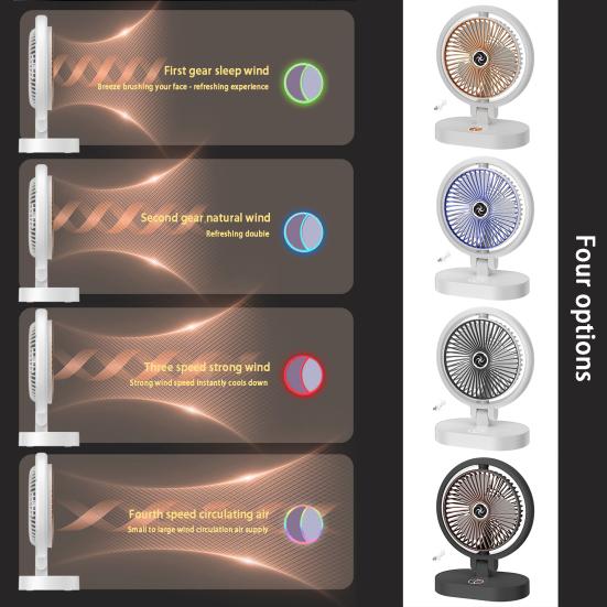 складываемый: Этот продукт представляет собой складной настольный вентилятор, который легко носить с собой.. Находитесь ли вы дома, в офисе, в походе или в путешествии, этот перезаряжаемый электрический вентилятор станет незаменимым аксессуаром, обеспечивающим прохладу и комфорт в течение дня.