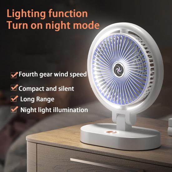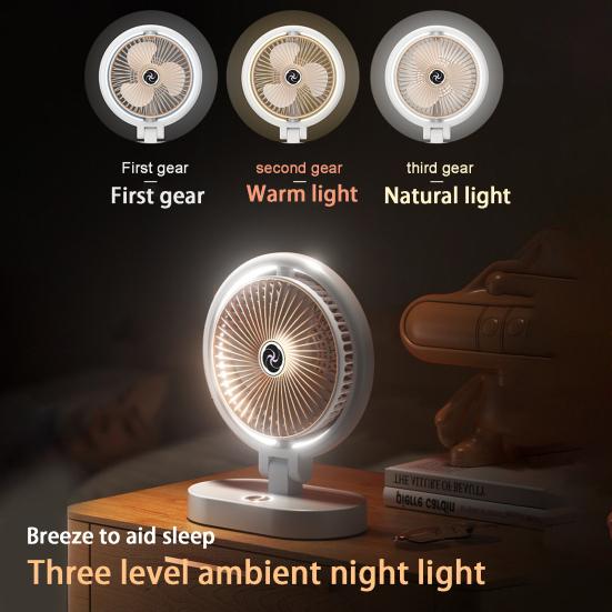 Идеально подходит для дома, офиса, улицы и путешествий.. Наш компактный настольный вентилятор — это не только решение для охлаждения, но и источник освещения с холодным, теплым и естественным освещением.. Благодаря четырем регулируемым скоростям ветра вы можете легко переключаться между высокими, средними и низкими настройками, чтобы наслаждаться тихим ветерком во время простоя.. Вращение головки вентилятора необходимо регулировать вручную, чтобы направить поток воздуха именно туда, куда вам нужно.. Этот перезаряжаемый вентилятор может похвастаться длительным временем автономной работы, обеспечивая прохладу и комфорт в течение дня.. Одной из выдающихся особенностей этого электрического вентилятора является его съемная конструкция, облегчающая очистку.. Просто разберите вентилятор, чтобы сохранить его оптимальную функциональность.. Улучшите качество охлаждения с помощью нашего перезаряжаемого электрического вентилятора — стильного и практичного дополнения к любому пространству.. Закажите сегодня и наслаждайтесь идеальным сочетанием удобства, комфорта и функциональности.