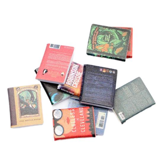 Набор из 10 уникальных миниатюрных книг без дубликатов, идеально подходящих для создания реалистичного и детализированного кукольного домика.