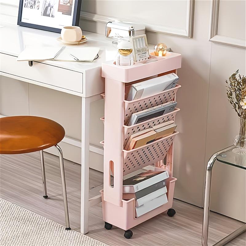 Многоярусный съемный настольный книжный шкаф на колесиках, 1 шт., органайзер для книг, органайзер для журналов и газет, настольный органайзер