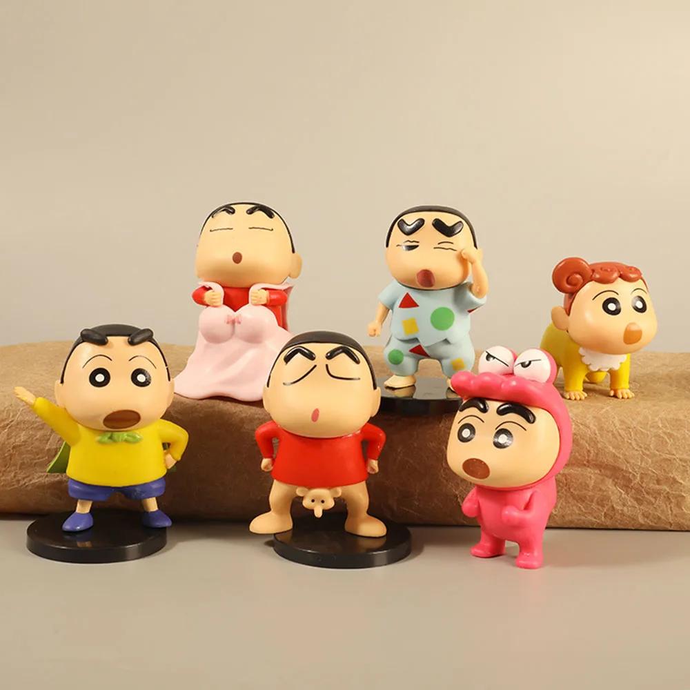 Набор из 6 шт., карандаш Шин-тян, аниме-фигурка, забавные движения, версия Q, мини-декор, фигурки, коллекционные детские игрушки, подарки