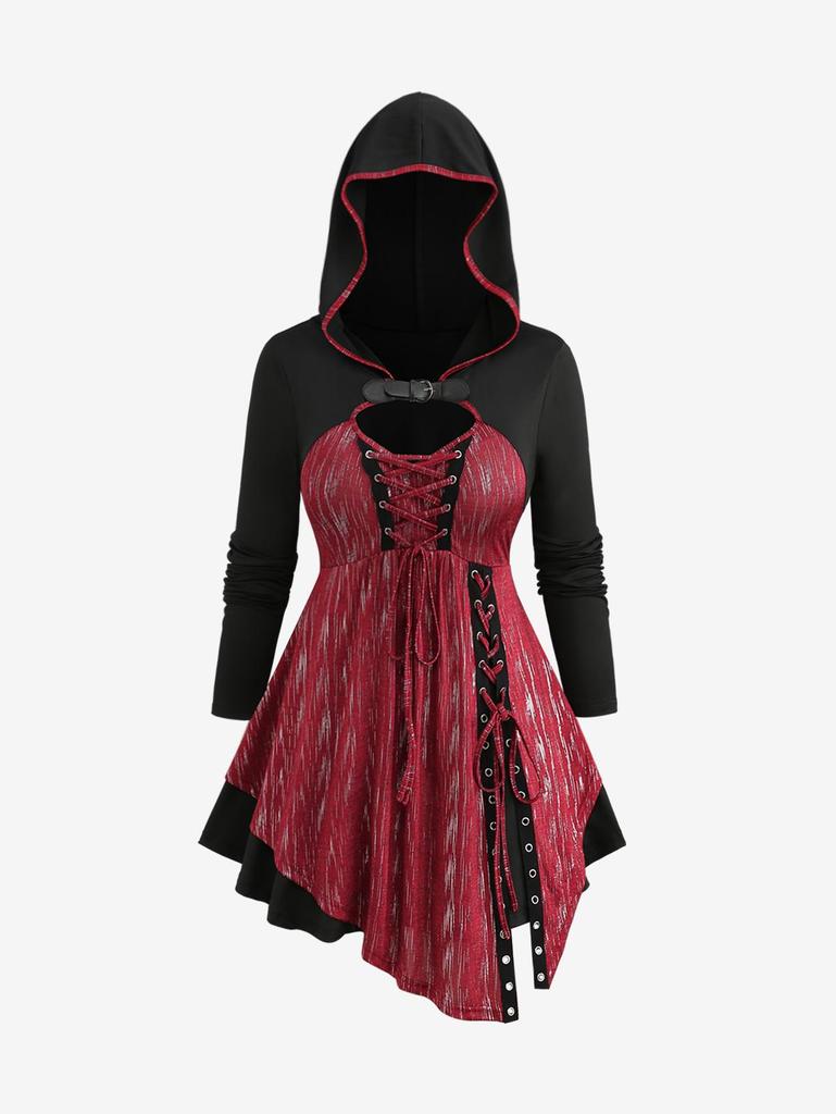 Rosegal Большие размеры Асимметричная футболка с капюшоном и блестящей пряжкой на шнуровке