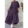 Женское однотонное повседневное длинное платье с круглым вырезом и длинными рукавами на шнуровке на шнуровке больших размеров