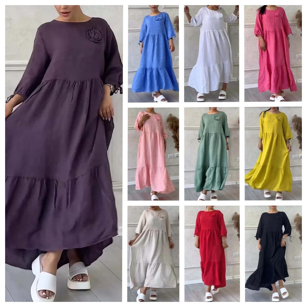 Женское однотонное повседневное длинное платье с круглым вырезом и длинными рукавами на шнуровке на шнуровке больших размеров — купить товар онлайн с бесплатной доставкой по всему миру!