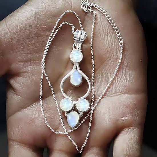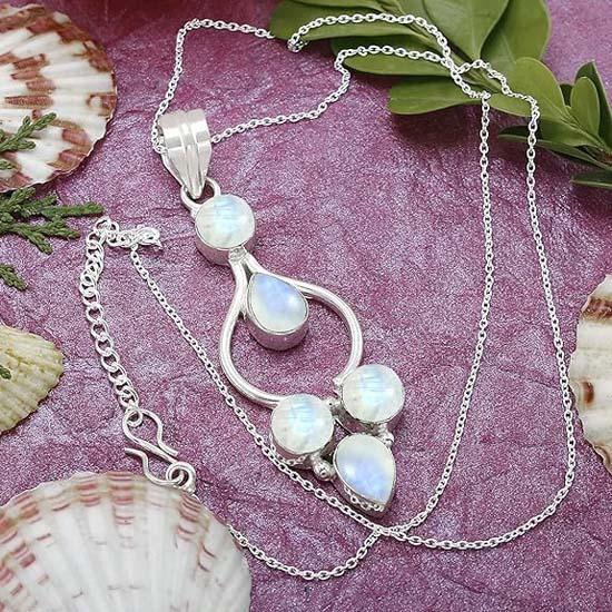 Ожерелье ручной работы из стерлингового серебра 925 пробы с лунным камнем, ожерелье в стиле бохо, подарок на годовщину, серебряные украшения, подарок для нее