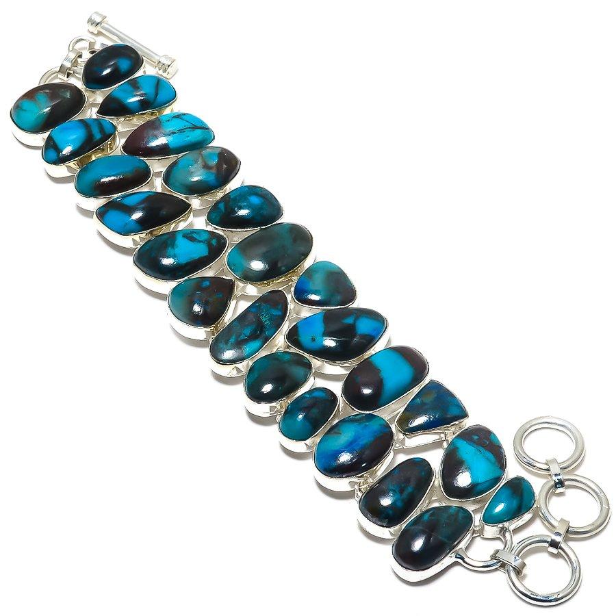 Браслет из серебра 925 пробы с драгоценными камнями хризоколла, ручная работа, 7-8 дюймов JCB326-17