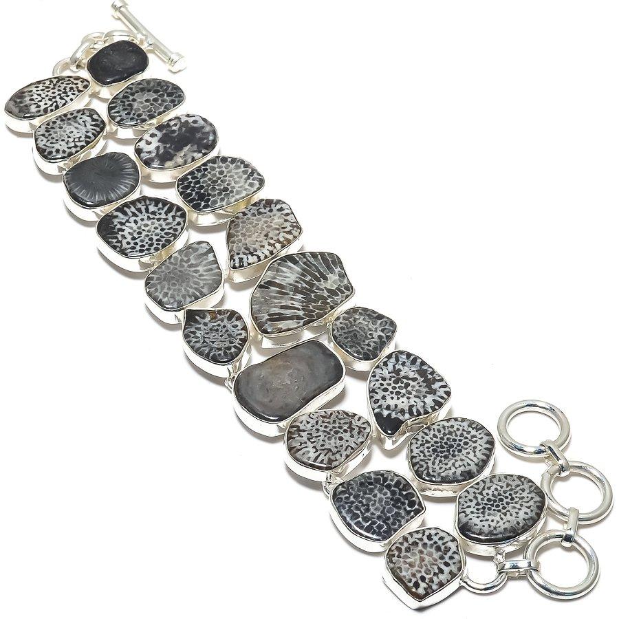 Браслет из серебра 925 пробы с драгоценными камнями из ската-коралла, 7-8 дюймов JCB326-19