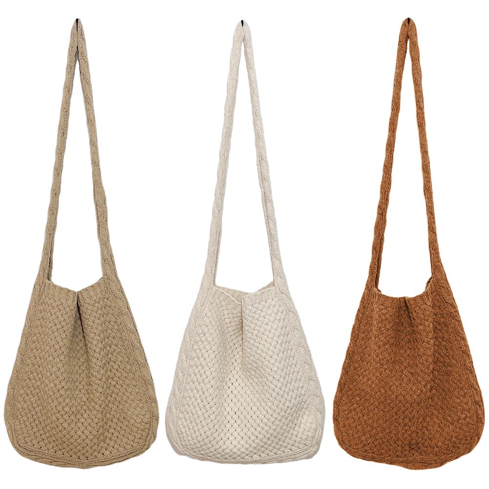 Женские сумки через плечо, повседневные однотонные вязаные сумки, вязанные вручную женские сумки на плечо, дорожные сумки-тоут для девочек — купить товар онлайн с бесплатной доставкой до всему миру!