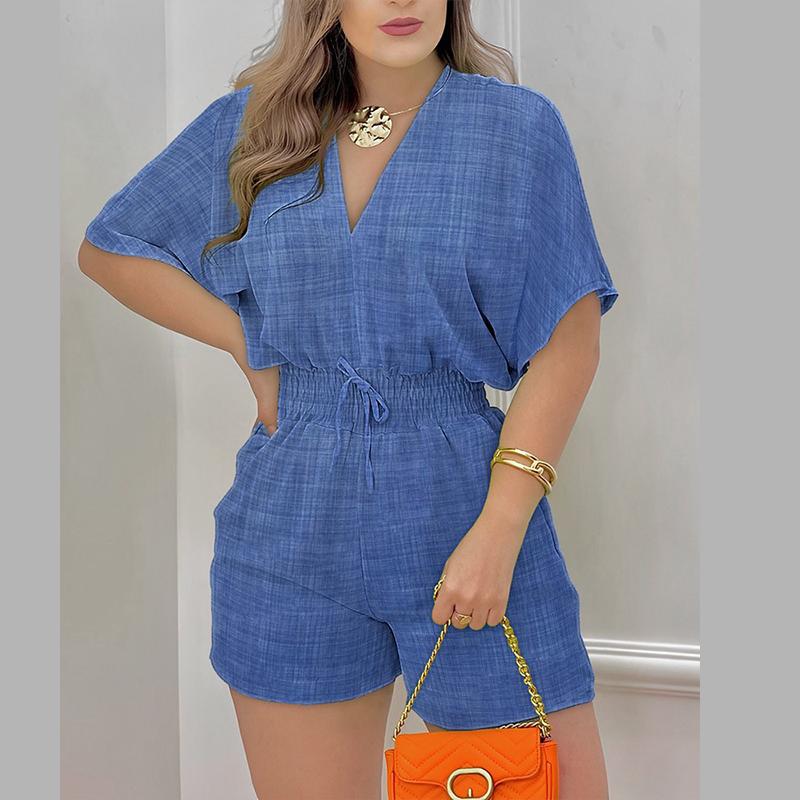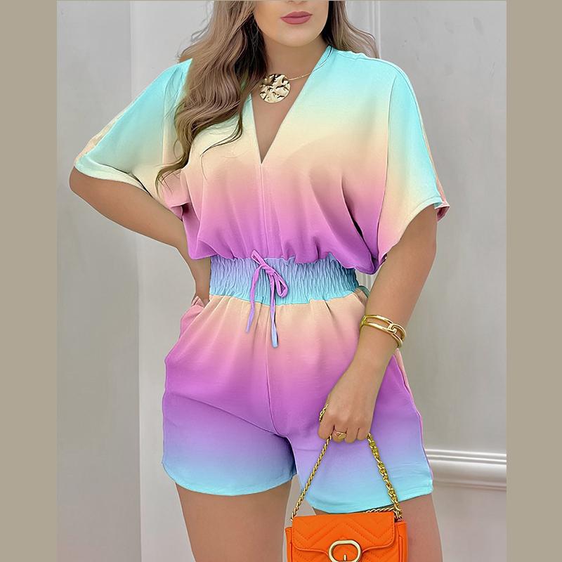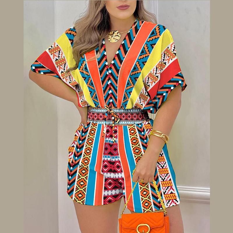 Комбинезон женский, летний, женский, свободный, повседневный, с принтом, элегантный, женский, модный, с v-образным вырезом, с коротким рукавом, шорты на талии, комбинезон