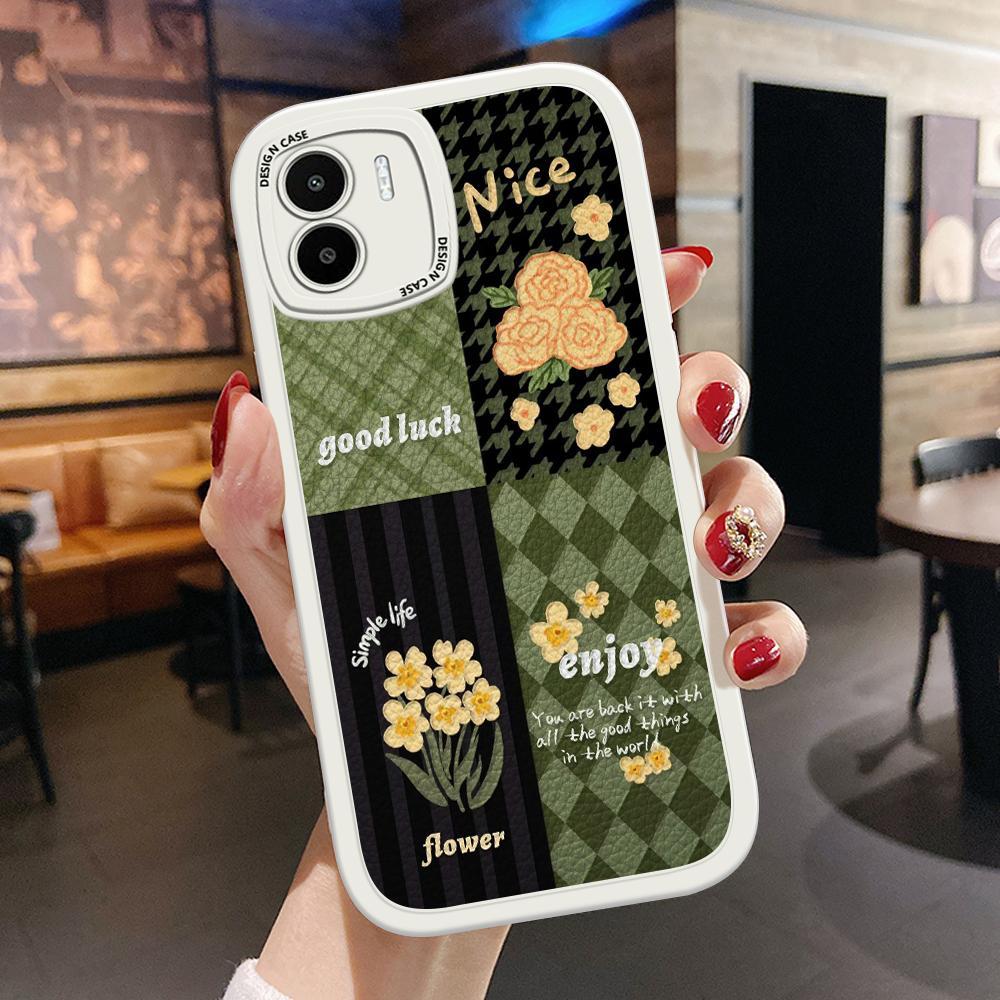 Стильный чехол для телефона из искусственной кожи с решетчатым рисунком и цветами для iPhone 15 14 13 12 Pro Max Samsung Galaxy S23 Ultra S20 FE A52 Redmi Xiaomi POCO Мягкий чехол