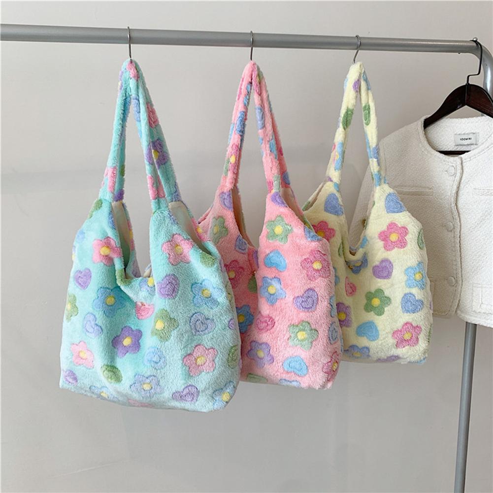 Женская милая пушистая сумка-хобо с цветочным узором, универсальная сумка для покупок, большая вместительная пушистая сумка Kawaii, мягкая зимняя сумка для девочек — купить товар онлайн с бесплатной доставкой до всему миру!