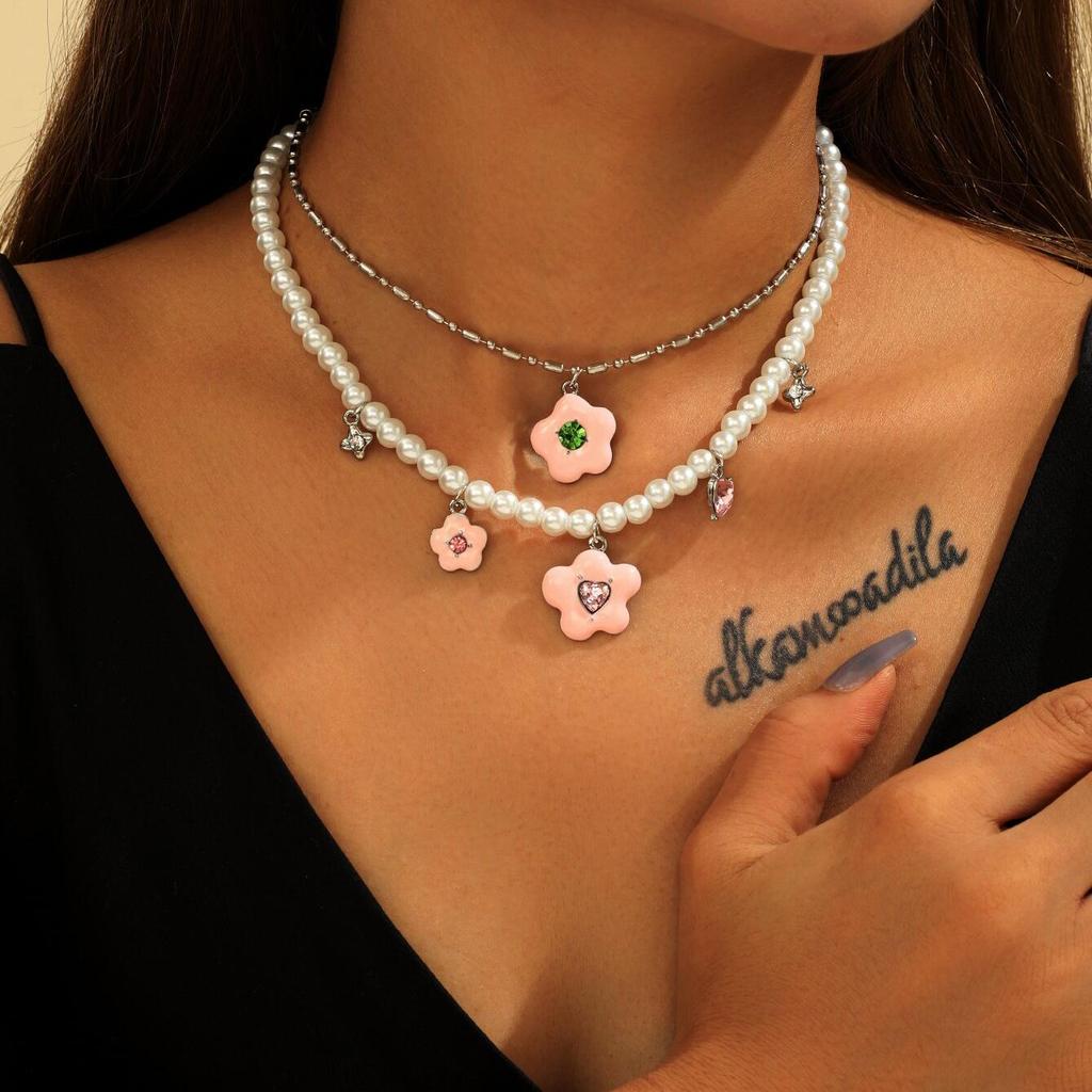 Модное многослойное ожерелье из инкрустированного кирпича с цветочным узором, персонализированное ожерелье из искусственного жемчуга, подарок на свадьбу для дам