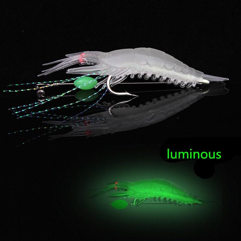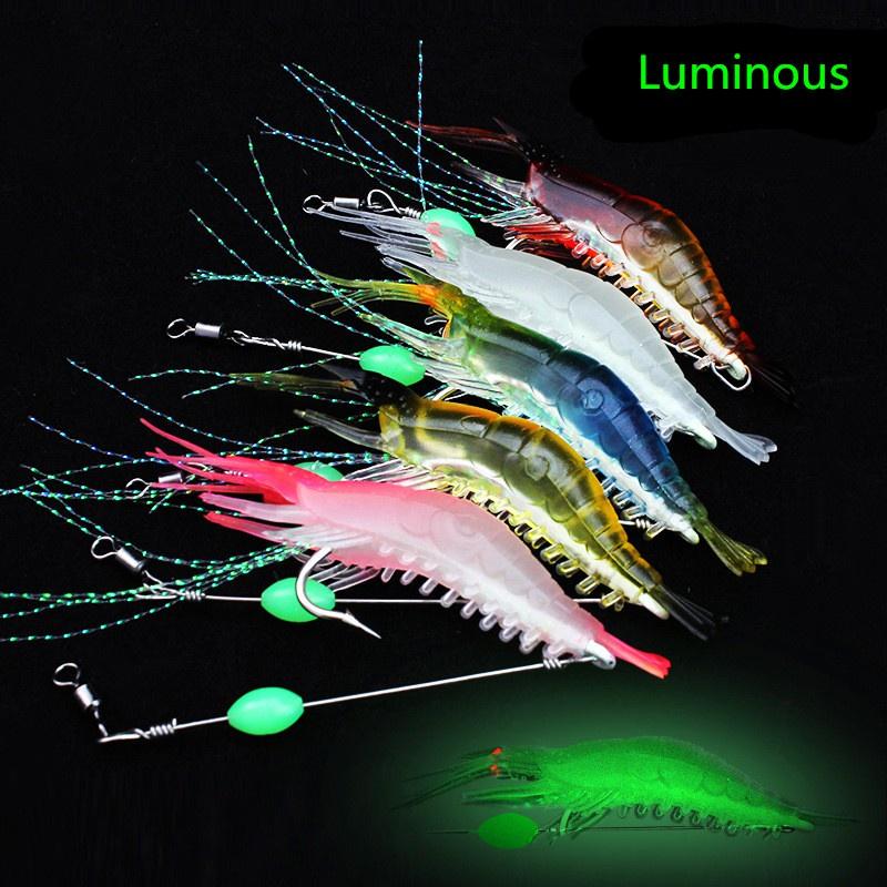 5 шт./компл., 9 см, 5,2 г, светящаяся приманка для креветок, мягкая рыболовная приманка, 5 цветов, смешанные искусственные приманки с рыболовными крючками и бусинами