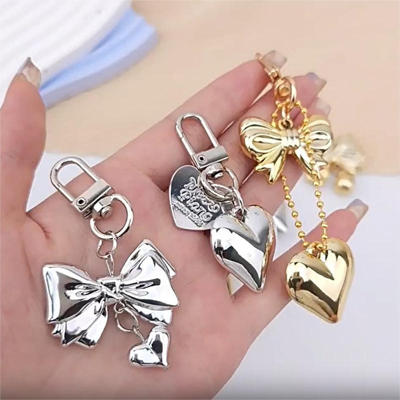 Y2K сладкий бантик кулон в форме сердца, брелок, модный браслет из бисера для телефона с бантом, ремешок для телефона, сумка, украшения, аксессуары, подарки