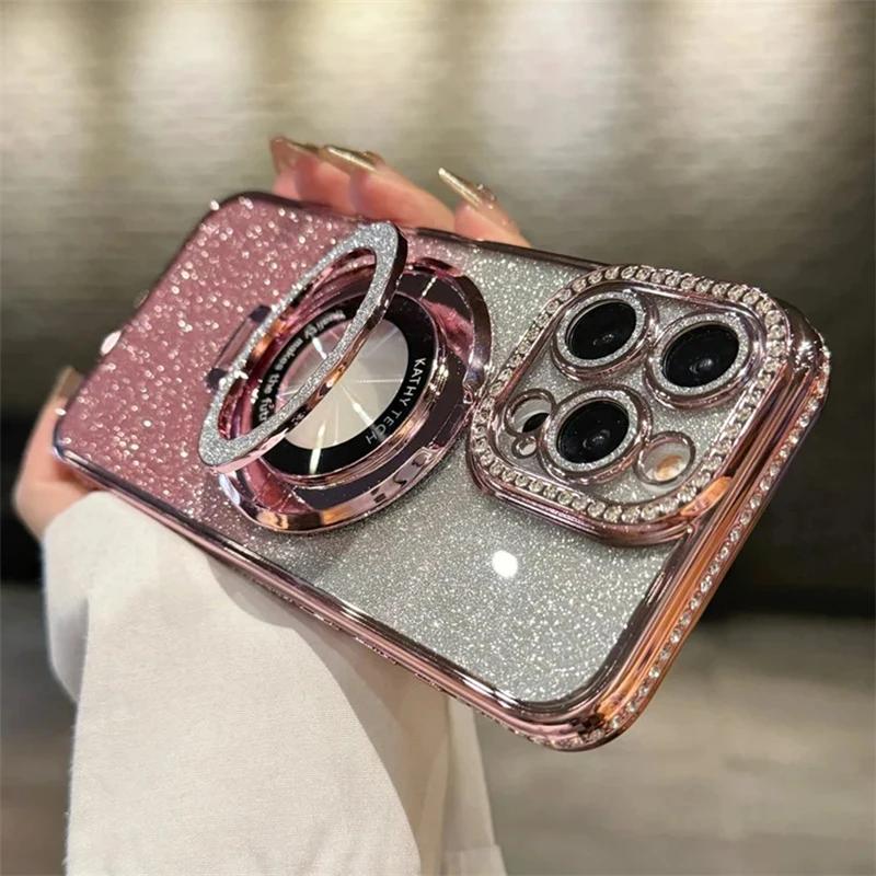 Роскошный чехол с магнитной подставкой и блестящим бриллиантом для iPhone 11 12 13 14 Plus 15 Pro Max XSMAX XR X 7 8 Plus SE Samsung S22 S23 S24 Ultra Plus