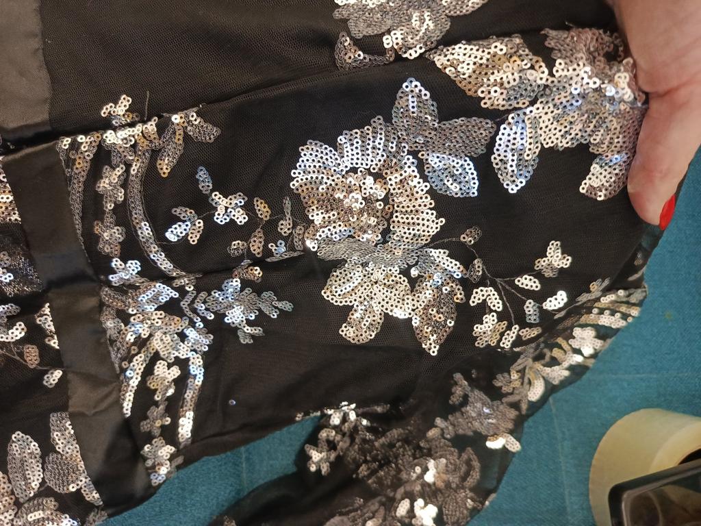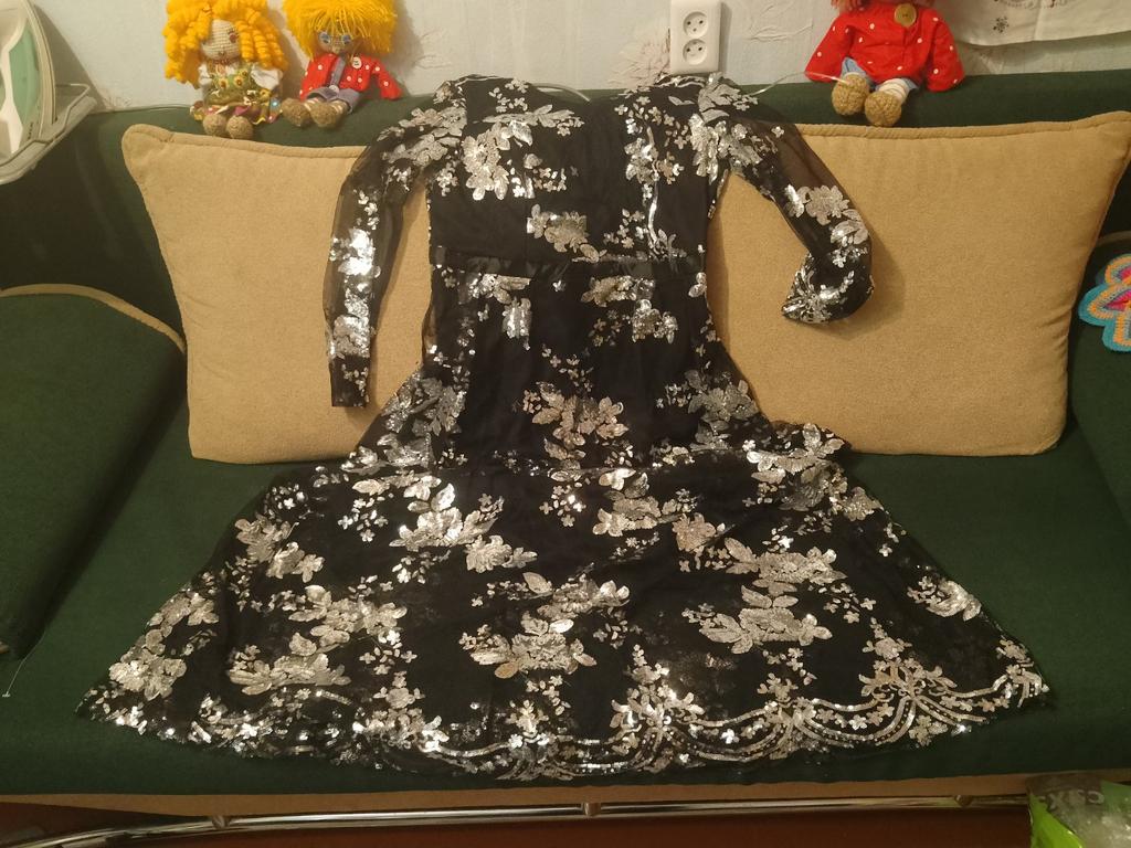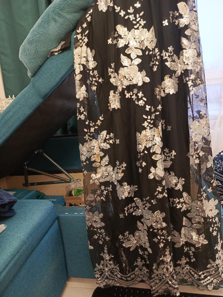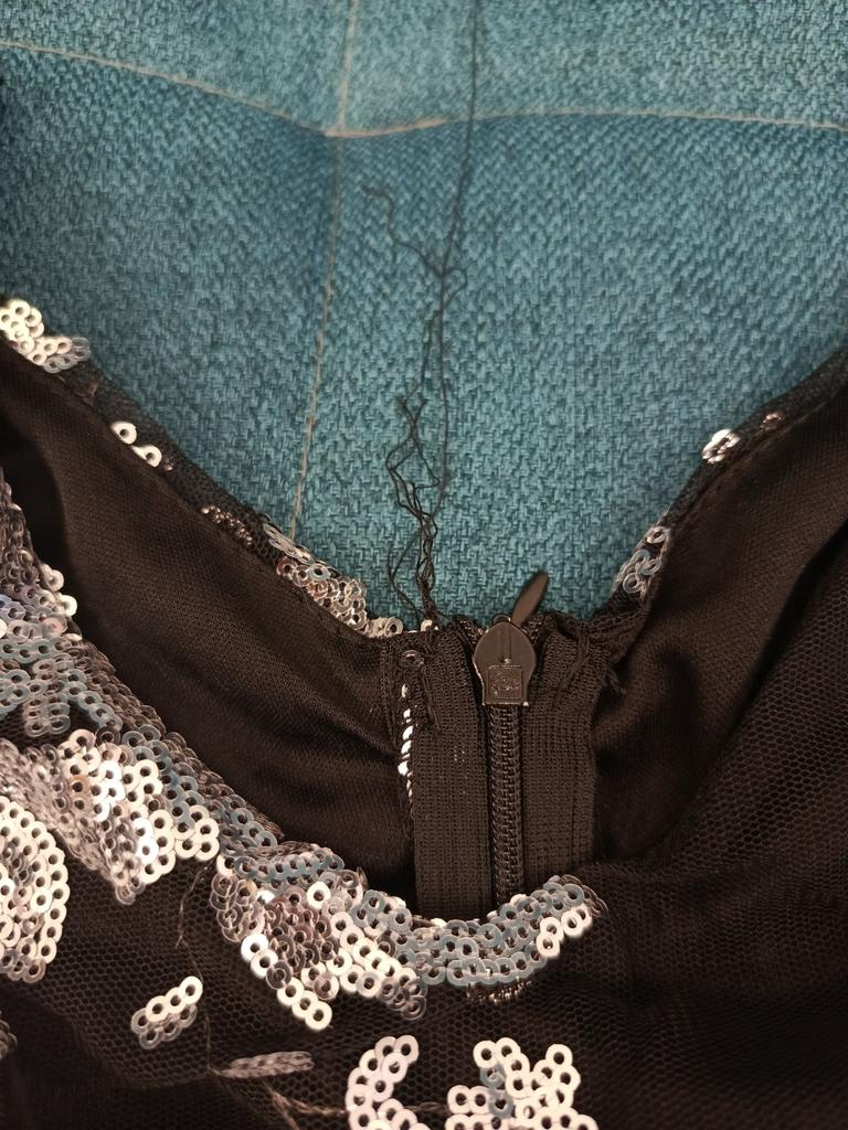 Такие куски висят. Сзади сделаны вытачки и получается эффект торчащих сосков, только на спине🙈 Ну и конечно никакое оно не широкое, юбка не клёш как на фото, чехол под ним узкий, значит подъюбник под него не подденешь. Покупала за 1900, ожидание.... Действительность. Так блестит конечно. Кстати пайетки отлетают , пока мерила ковер был в блестках. Молнию страшно растягивать, заедает. Швы не ровные.