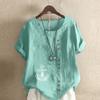 Женская модная футболка с круглым вырезом и коротким рукавом, повседневная хлопковая льняная рубашка с рисунком, свободная летняя блузка с принтом для отдыха, корабельный якорь, топы