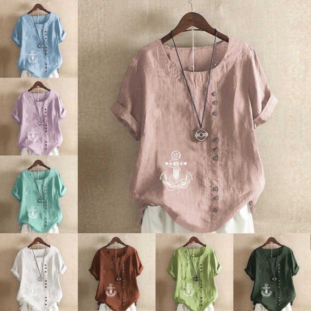 Женская модная футболка с круглым вырезом и коротким рукавом, повседневная хлопковая льняная рубашка с рисунком, свободная летняя блузка с принтом для отдыха, корабельный якорь, топы — купить товар онлайн с бесплатной доставкой по всему миру!