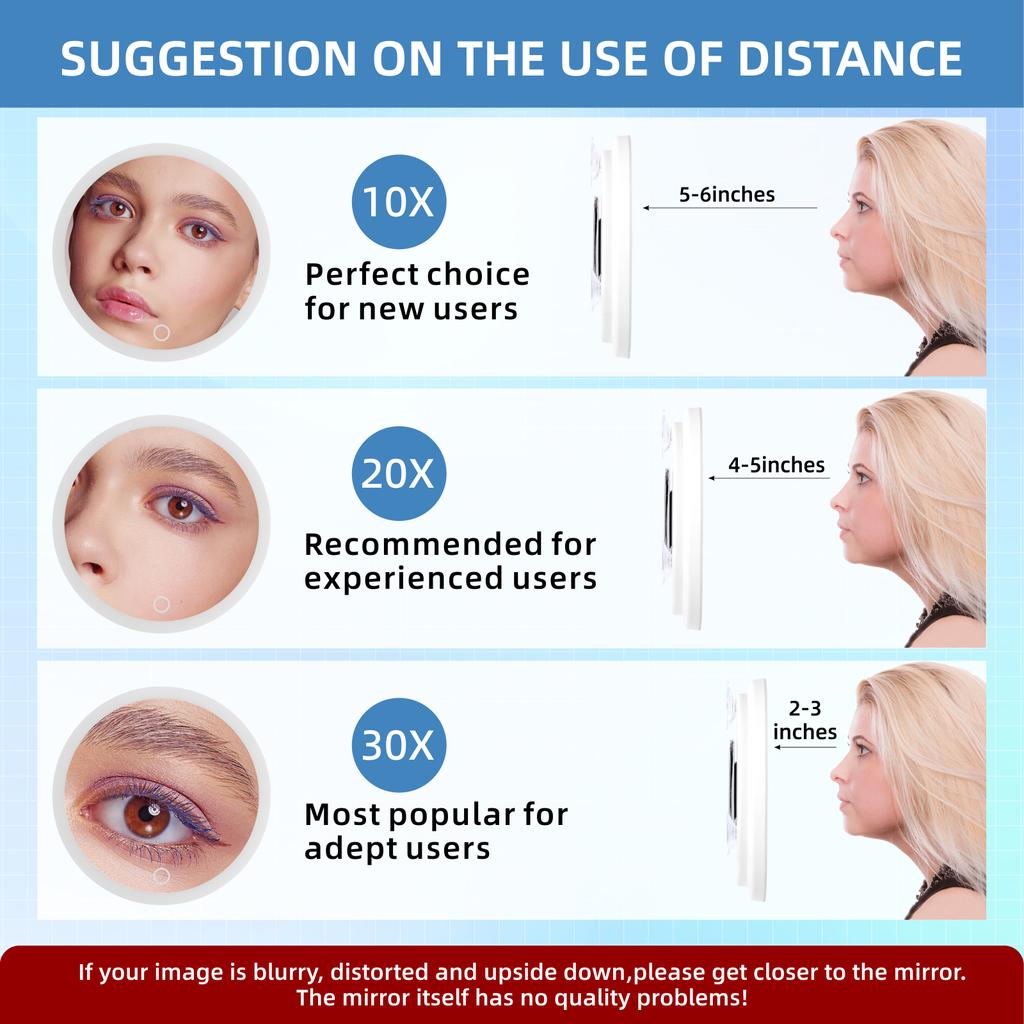 【Полезный совет】Увеличение 5–30X очень мощное, и лучшая фокусировка достигается на расстоянии 3–6 дюймов от лица.. Перевернутое или искаженное изображение издалека — это нормально, просто двигайтесь медленно, пока не получите лучший фокус.. Эта присоска для зеркала с увеличением в 5-30 раз станет идеальным подарком для жены, друзей, матери и для себя!