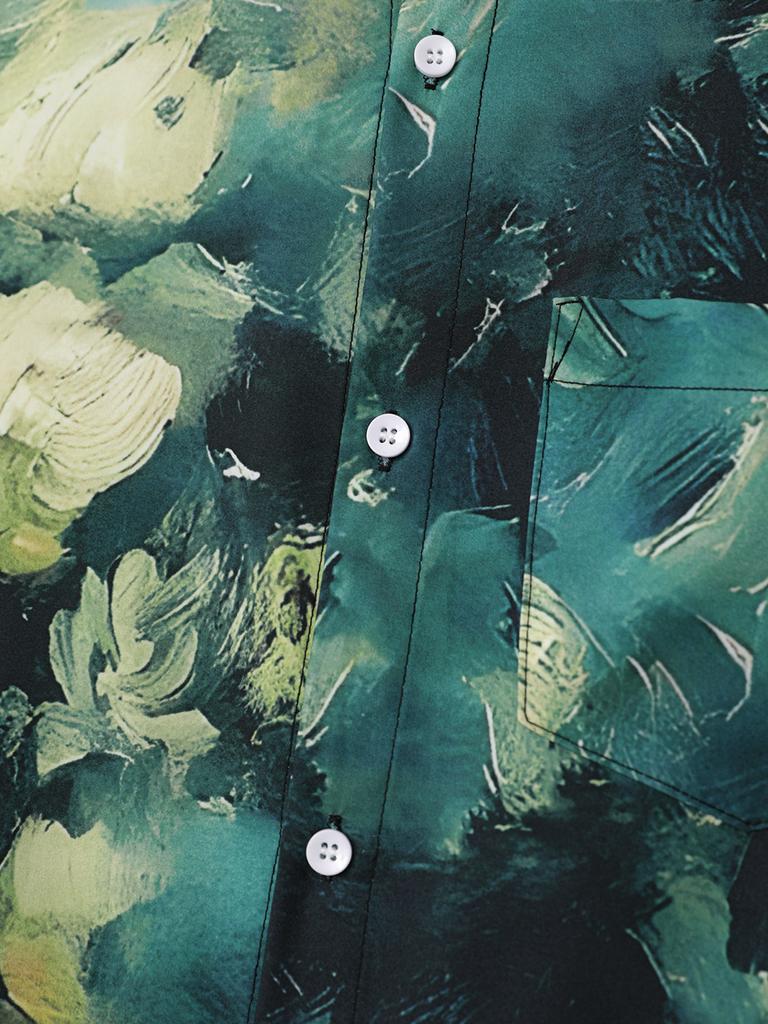 Негабаритная свободная ретро картина маслом с принтом с коротким рукавом Гавайи Пляжная летняя мужская рубашка Студенческая модная повседневная мужская одежда