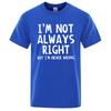 Мужская футболка с надписью «Я не всегда прав», футболки высокого качества, летняя одежда оверсайз с короткими рукавами, хлопковые свободные уличные топы