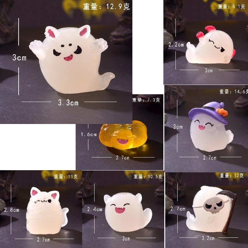7Pcs/set Cartoon Halloween Ornaments Luminous Ghost Animal Minaitures Micro Landscape Diy Resin Crafts