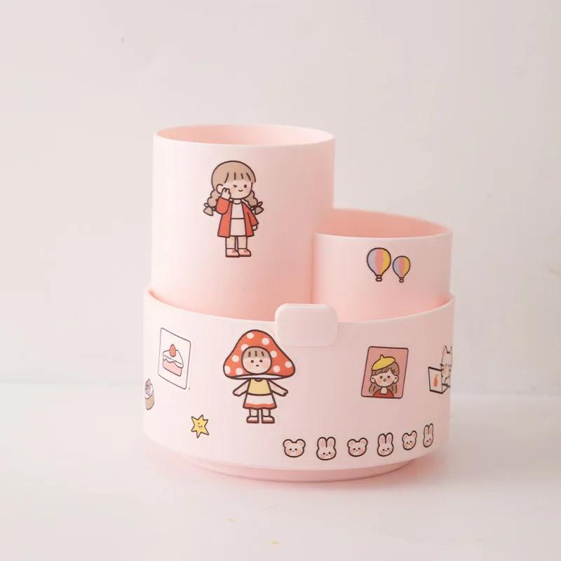Kawaii пластиковый многофункциональный настольный органайзер, держатель для ручек, подставка для телефона, вращающийся держатель для ручек, школьные канцелярские принадлежности