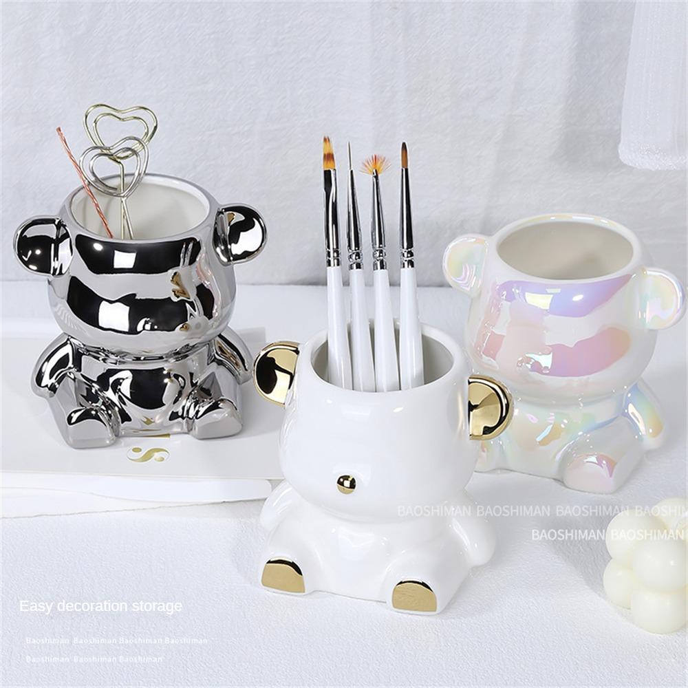 Настольная организация, керамика, многократное использование, пыленепроницаемая и влагостойкая, милый медведь, натуральные цвета, держатель для ручек, керамическая трубка для хранения