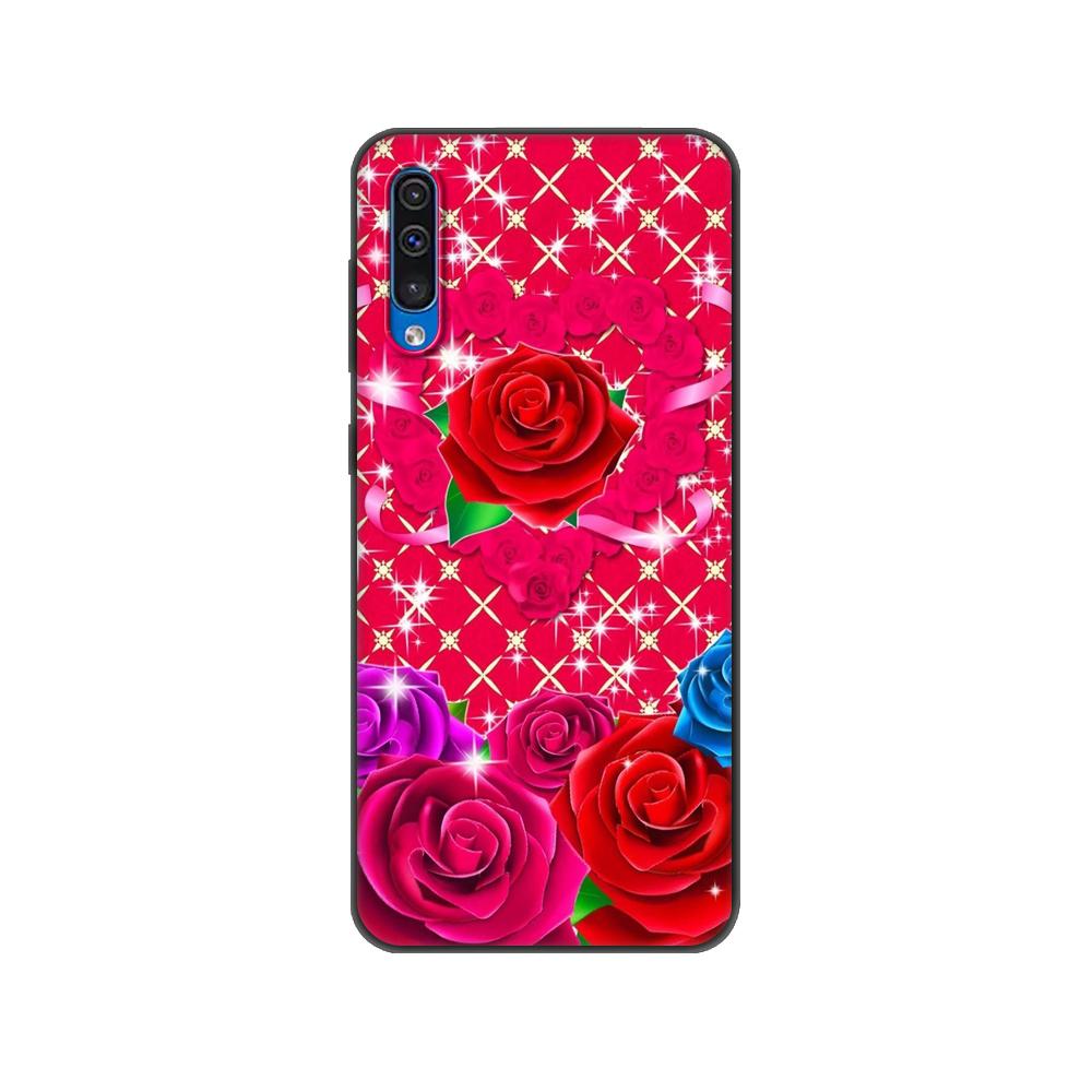 Черный чехол из ТПУ для Samsung Galaxy A50 50S A30S A10 A01 A11 A21S A31 A41 A51 A71 M21 M30S S10 LITE Красная бабочка на цветке розы