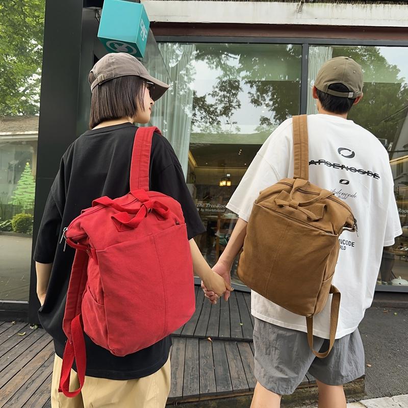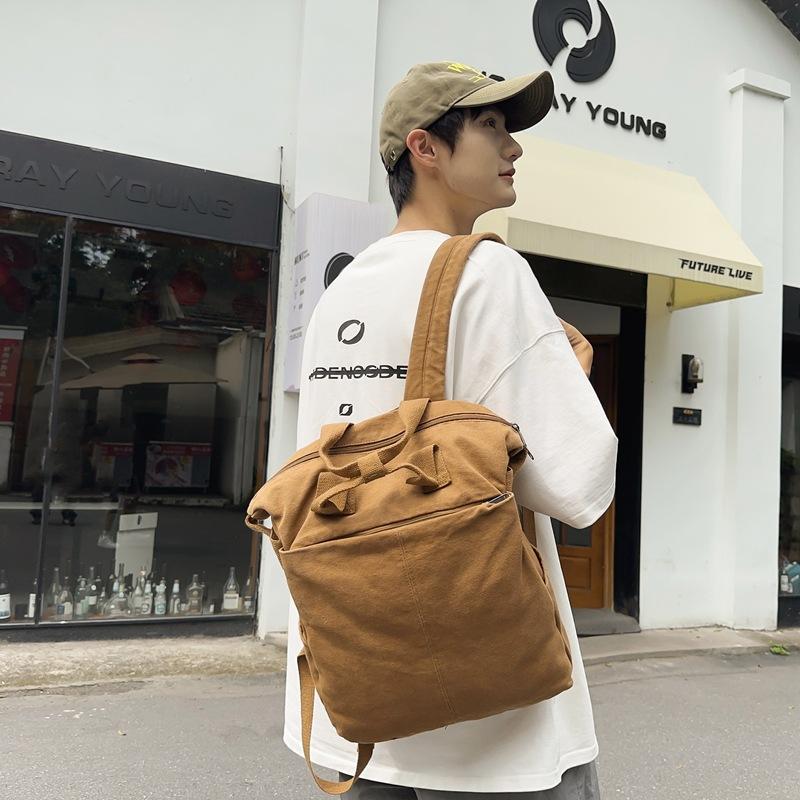 Холст Рюкзак Сплошной цвет Студенческий школьный мужской рюкзак большой емкости для путешествий