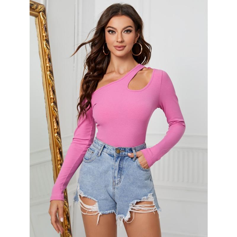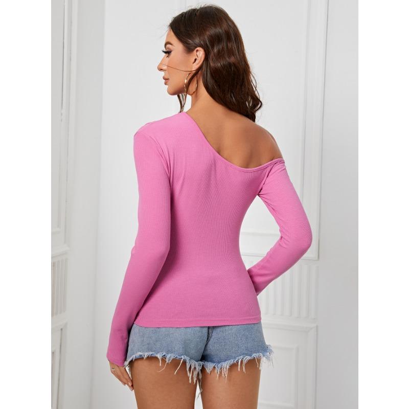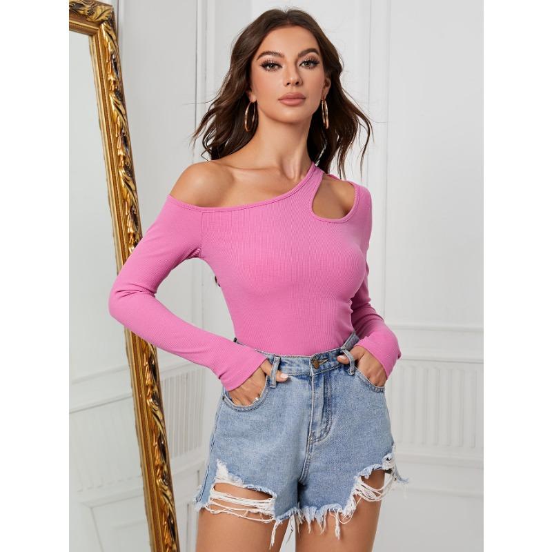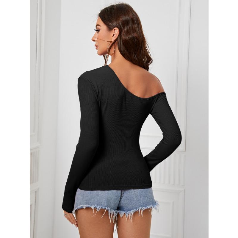 Летний женский тонкий вязаный топ нерегулярной формы с наклонными плечами и длинными рукавами