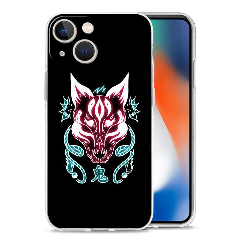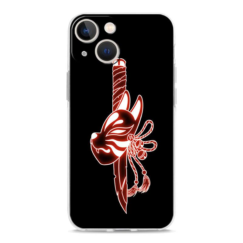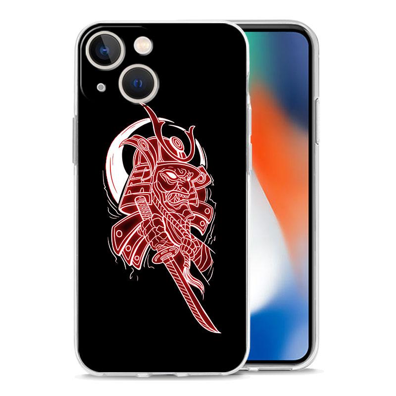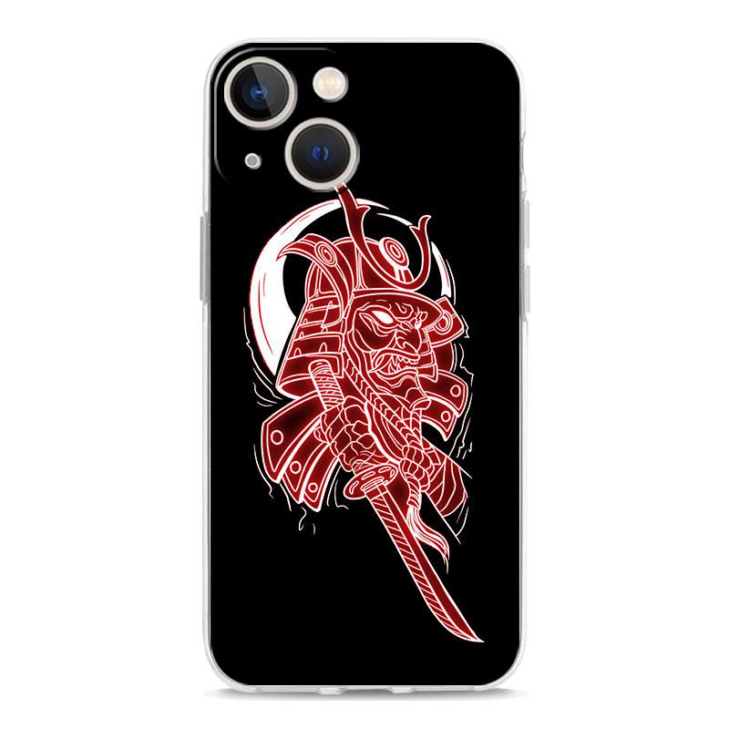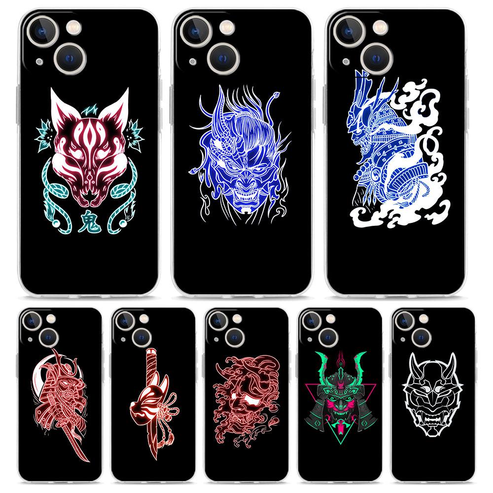 Роскошный прозрачный чехол для телефона для iPhone 15 14 13 12 11 Pro Max XS X XR 7 8 Plus Прозрачная противоударная накладка Самурай Маска Они неон