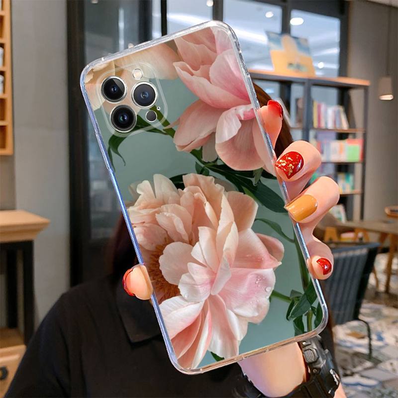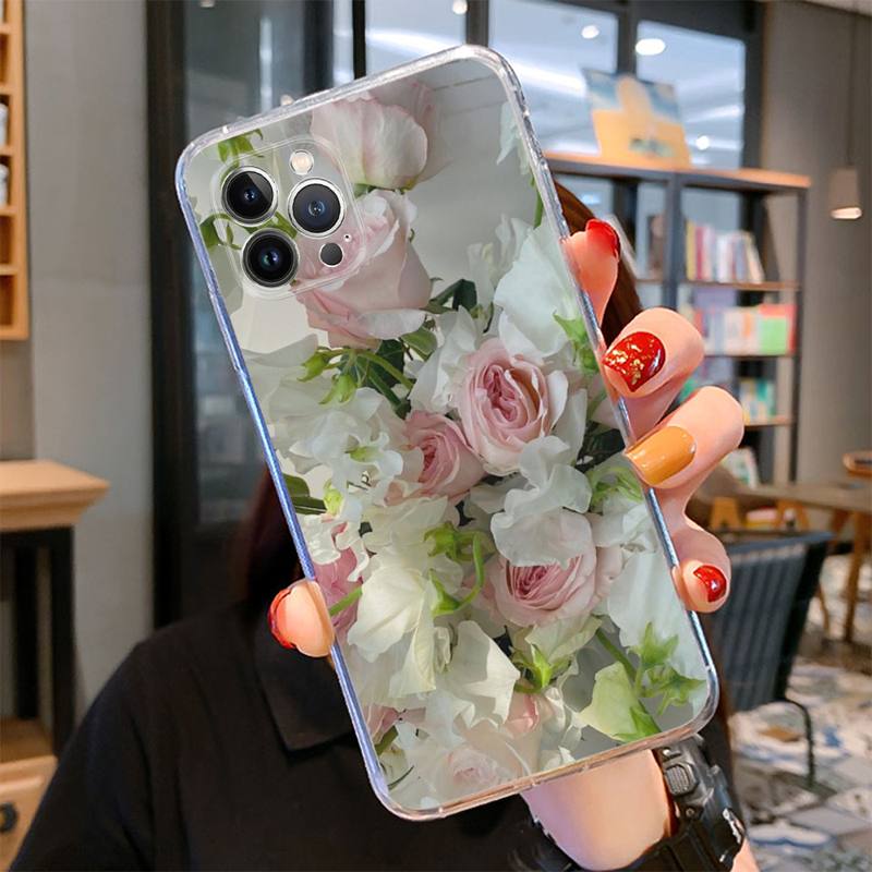 Розовый чехол для телефона с цветочным рисунком для iPhone 14 13 12 11 Pro Max XS X XR SE 2020 6 7 8 Plus Mini Transparent Shell