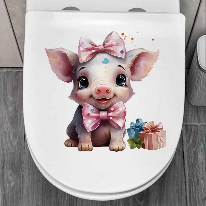 Милый мультяшный поросенок для ванной комнаты, креативная наклейка для унитаза, украшение для крышки унитаза, водонепроницаемая наклейка