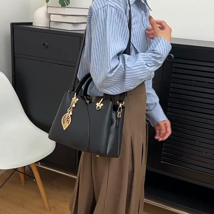 Классическая однотонная сумка, текстурированная элегантная сумка через плечо с декором из подвески в виде листьев — купить товар онлайн с бесплатной доставкой по всему миру!