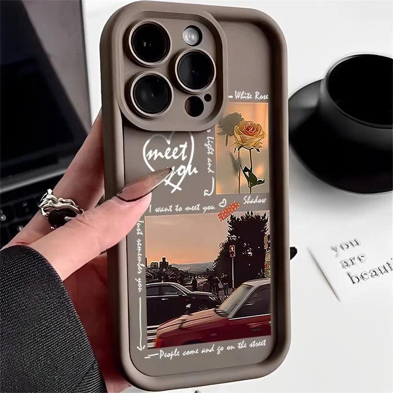 Силиконовый чехол для телефона с художественным пейзажем на каждый день для iPhone 15 14 13 12 11 Pro XS Max X XR 7 8 15 Plus SE противоударный защитный чехол для объектива камеры