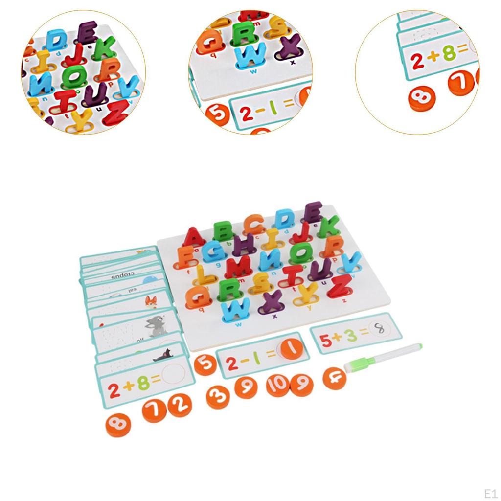 - 【Изучение математики】: В этих деревянных головоломках с цифрами и алфавитом есть карточки для изучения арифметики, позволяющие выполнять базовые операции сложения и вычитания чисел 1–10.