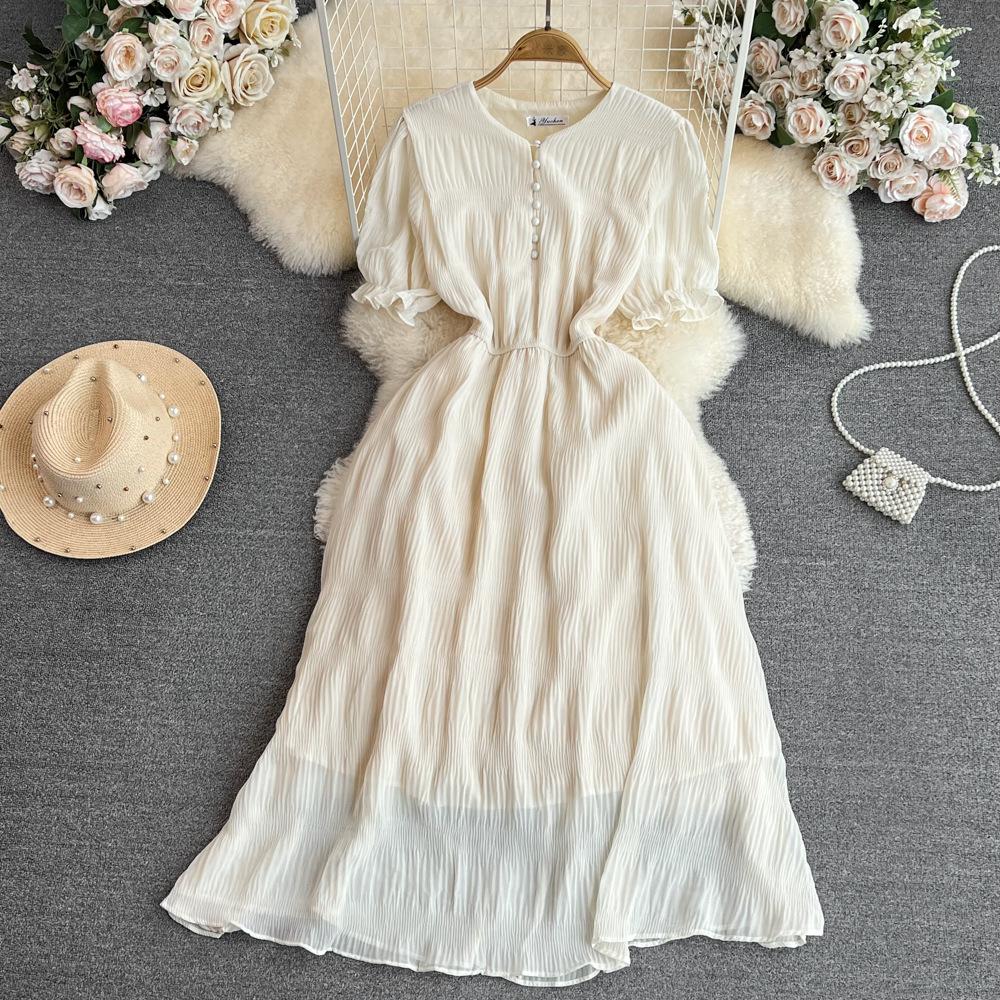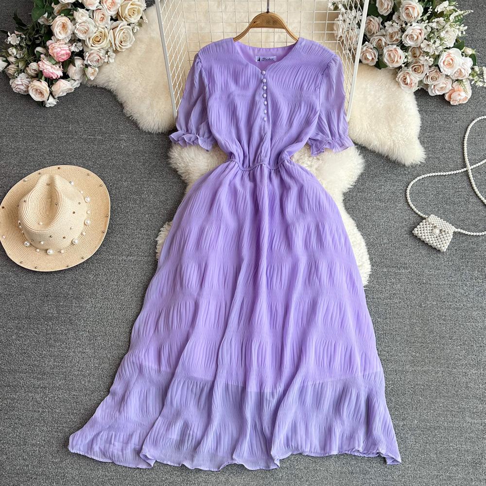 Летнее винтажное длинное платье для женщин с пышными рукавами и короткими рукавами, элегантное тонкое черное платье макси, розовое, хаки, зеленое, белое