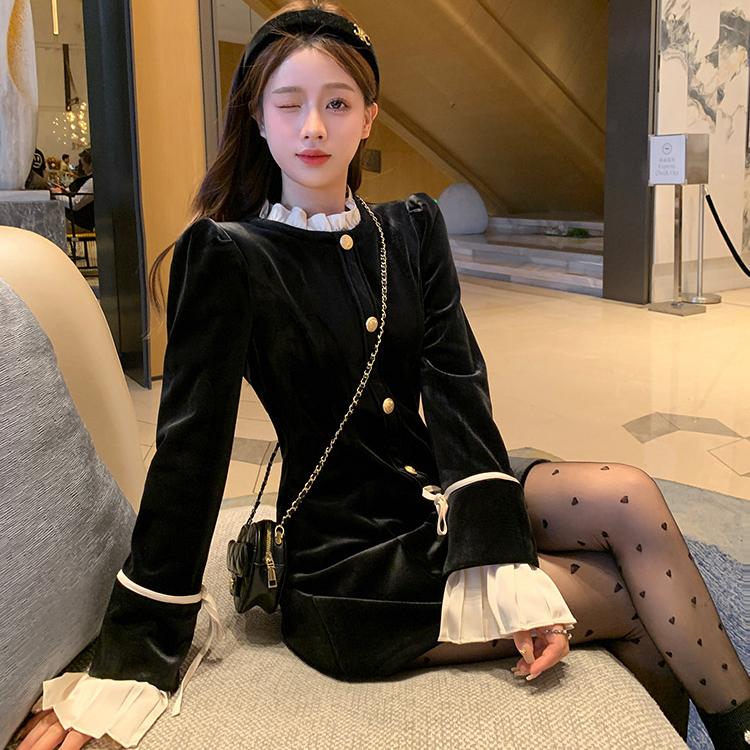 Женское бархатное мини-платье Y2K с оборками в стиле пэчворк с круглым вырезом на шнуровке с длинными рукавами, французское винтажное элегантное вечернее платье, Vestidos Mujer