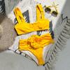 Сексуальный женский двухсекционный цветочный бюстгальтер пуш-ап с подкладкой, белый комплект бикини, купальник, купальный костюм со шнуровкой, пляжная одежда, бикини